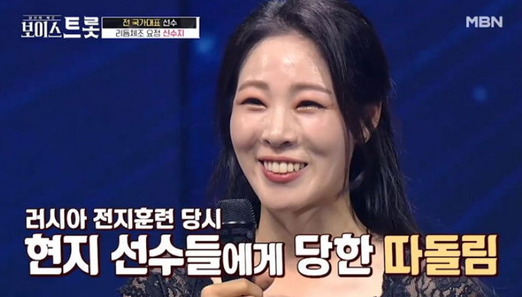 무대가 끝난뒤에는 러시아에 전지훈련을 할 때 선수들에게 따돌림을 당했다 걸어서 40분 거리에 있는 슈퍼에 가서 빵셔틀을 당했다며 심수봉 “비나리”를 들으며 많이 위로가 돼었다고 말했습니다